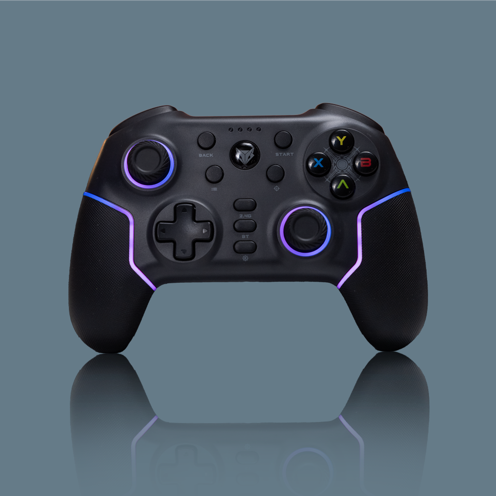 The controller offers extra features like replaceable joystick caps (two heights) for personalized control feel, dual vibration motors for rumble feedback, a turbo mode, and adjustable sensitivity or trigger modes to fine-tune performance. There’s also RGB lighting, 3.5 mm audio jack (works in wired mode), and ergonomic rubberized grips — making long gaming sessions comfortable.